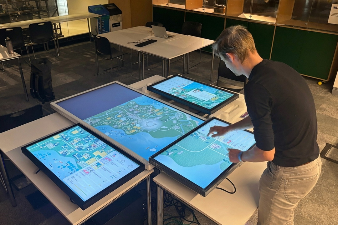 Land Use is an interactive multiplayer game where your choices regarding land and food shape a shared city. While playing individually, a shared projection shows how all decisions combine to shape the outcome. It’s intuitive and playful, built to encourage reflection and engagement.